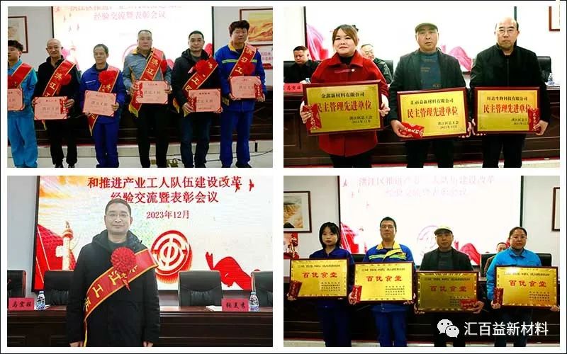 湖南匯百益新材料有限公司等三家企業(yè)榮獲年度先進(jìn)單位榮譽(yù),包括匯百益技術(shù)總監(jiān)余博士在內(nèi)的6名不同企業(yè)相關(guān)技術(shù)負(fù)責(zé)人被評(píng)為洪江工匠,會(huì)議對(duì)獲獎(jiǎng)單位及個(gè)人進(jìn)行了表彰。區(qū)領(lǐng)導(dǎo)在會(huì)上表示:希望獲得表彰的集體和個(gè)人珍惜榮譽(yù),再接再厲,在實(shí)施技術(shù)攻關(guān)、推動(dòng)科技創(chuàng)新、提高技能素質(zhì)、深化企業(yè)民主管理等方面再立新功再創(chuàng)佳績(jī)。